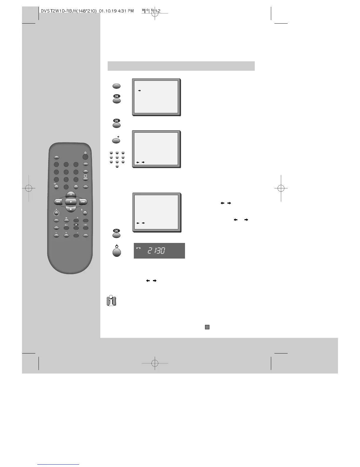 For timer recordings, clock, date, and stations must be set correctly.