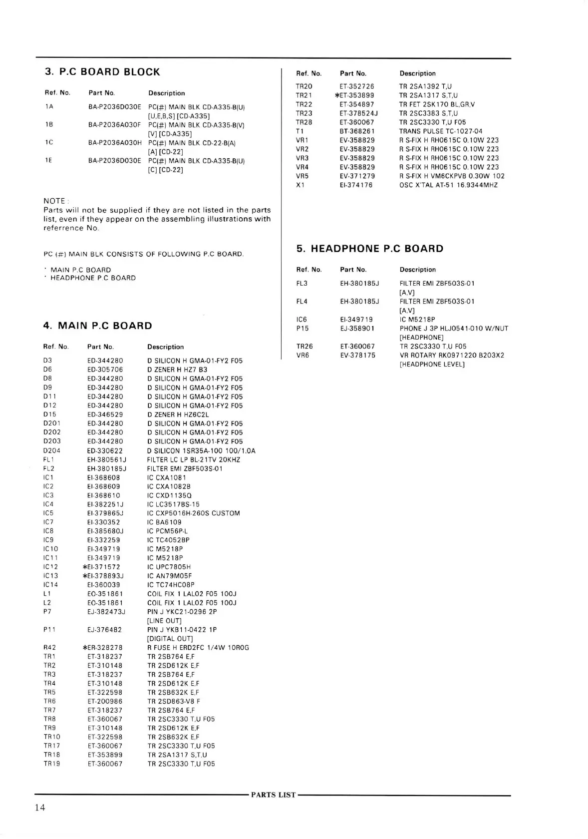 Parts will not be supplied if they are not listed in the parts