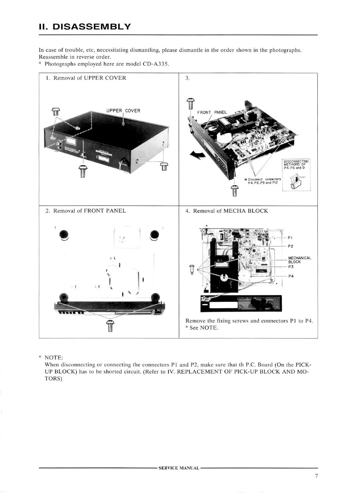 case of troiible, etc, nece.ssitating dismantling, please dismantle in the order shown in the photographs.