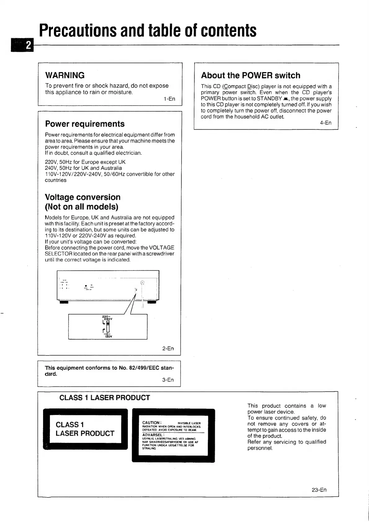 Akai CD-55 - Precautions and Table of Contents