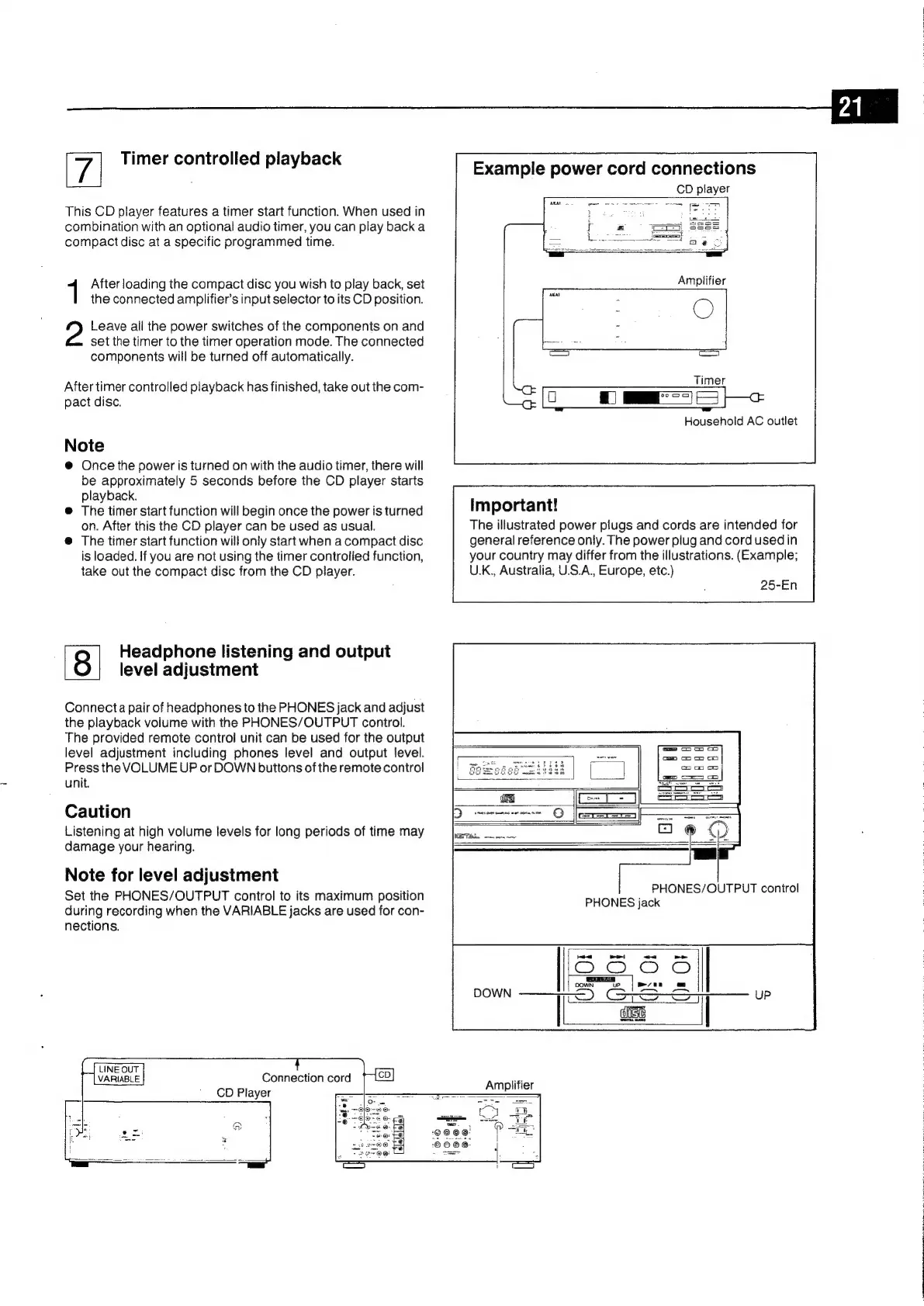 Akai CD-55 - Timer Controlled Playdack Oo; Headphone Listening & Output Level Control