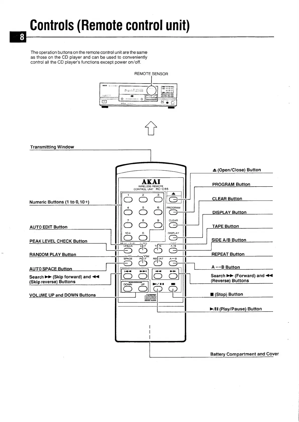 Akai CD-55 - Controls (Remote Control Unit) 0
