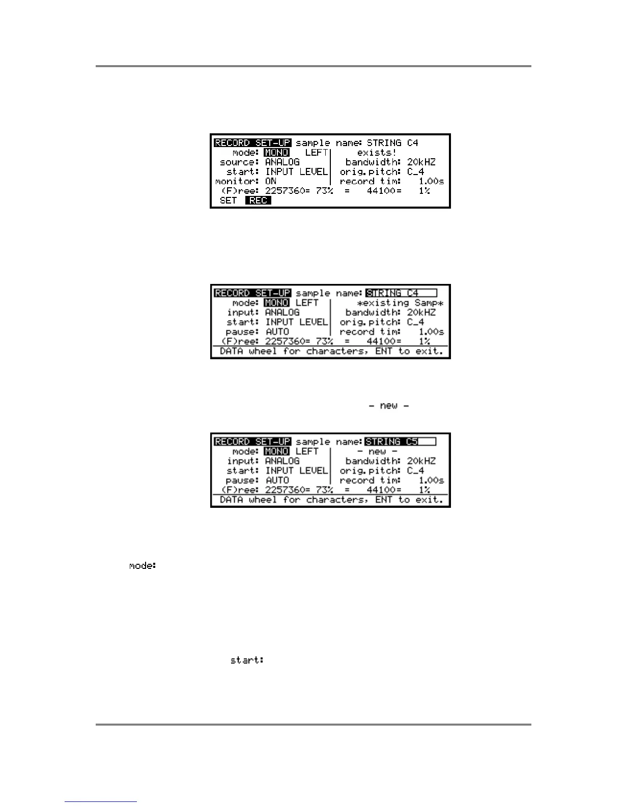 Pressing SAMPLE enters the record or ‘sampling’ mode. The first screen you see is the
