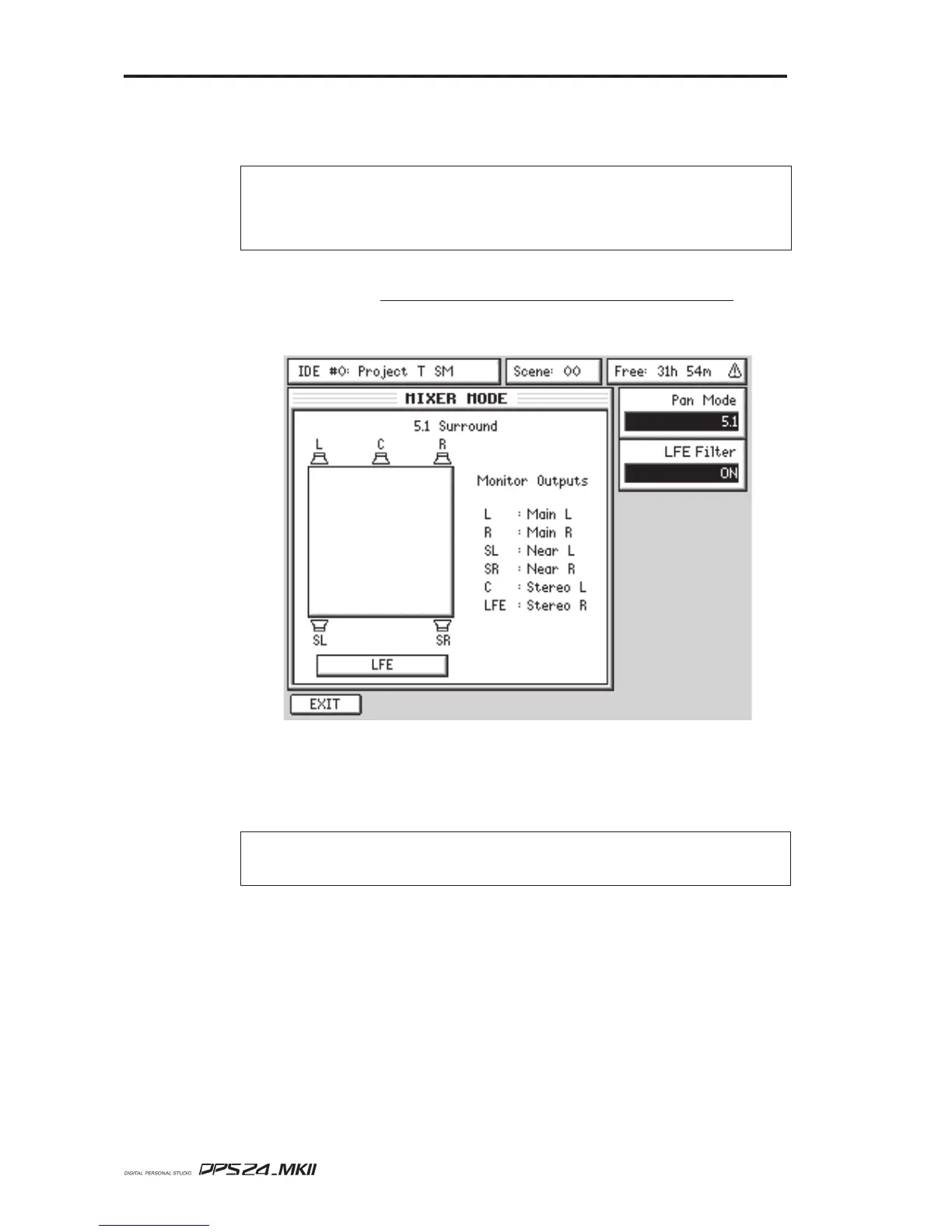 The MIXER MODE page will change to reflect the selected surround format: 5.1, LCRS or 2+2: