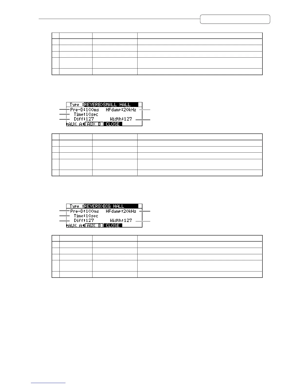 3 Diff 0 – 127 Adjusts the density of reverberation.