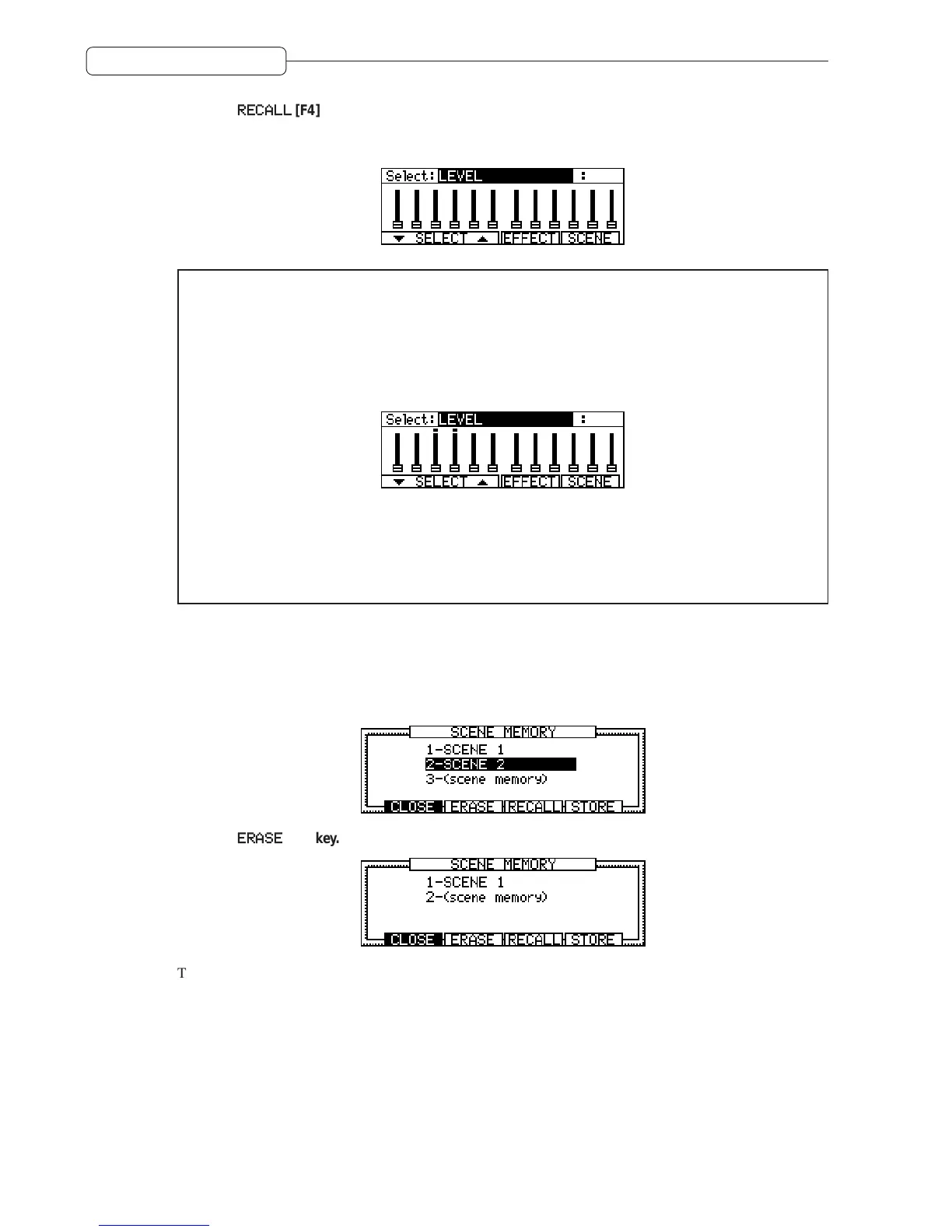 scene. If necessary, store the current Mixer parameter settings before you recall a scene.