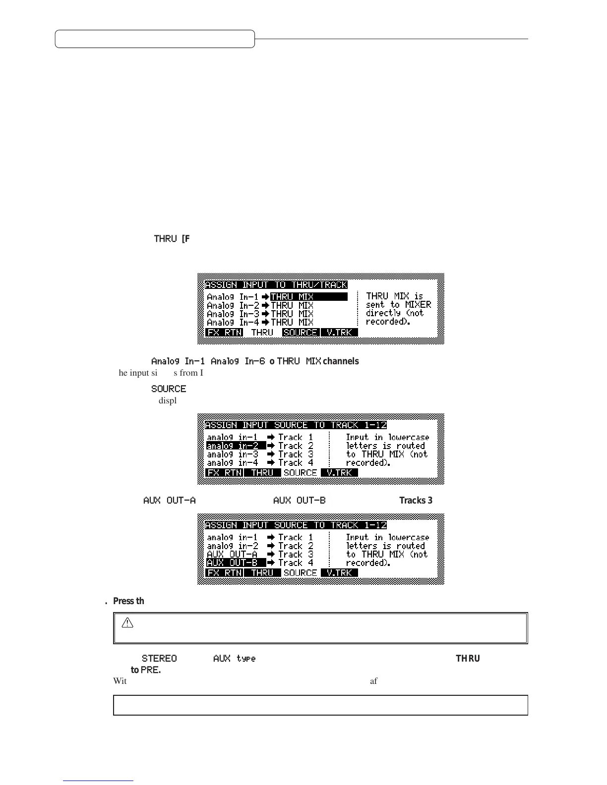 field in Mixer mode, and set AUX PRE/POST for THRU channels