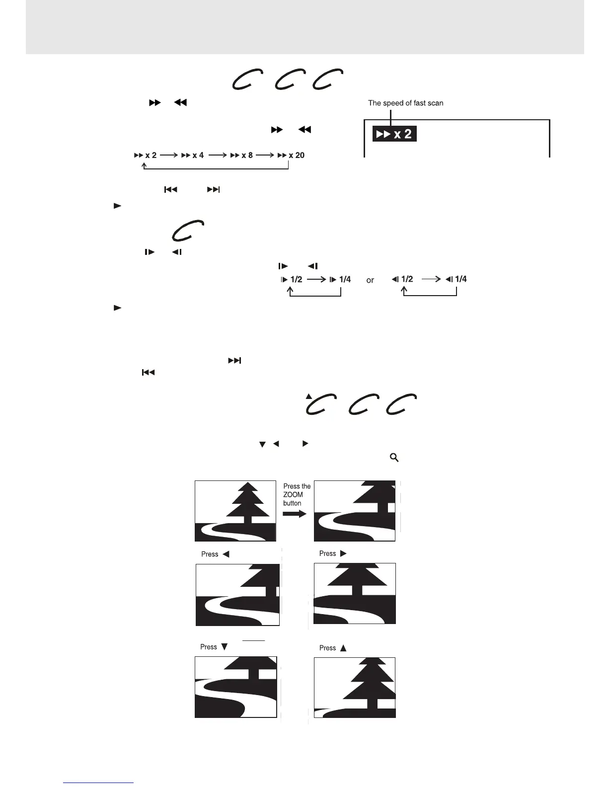 SKIP button on front panel repeatedly to select different fast scan speed.