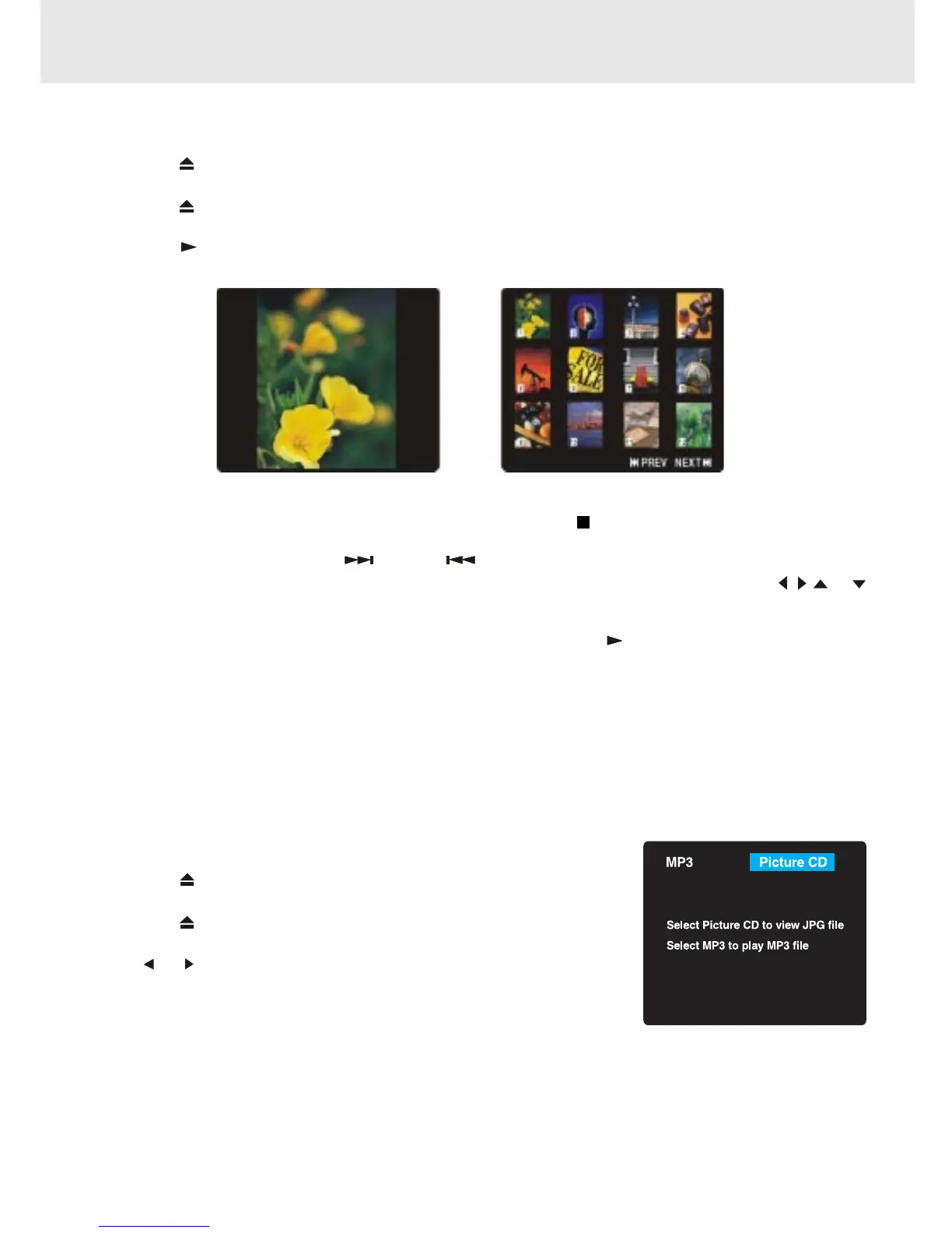 or button to select MP3 or Picture CD, then press the