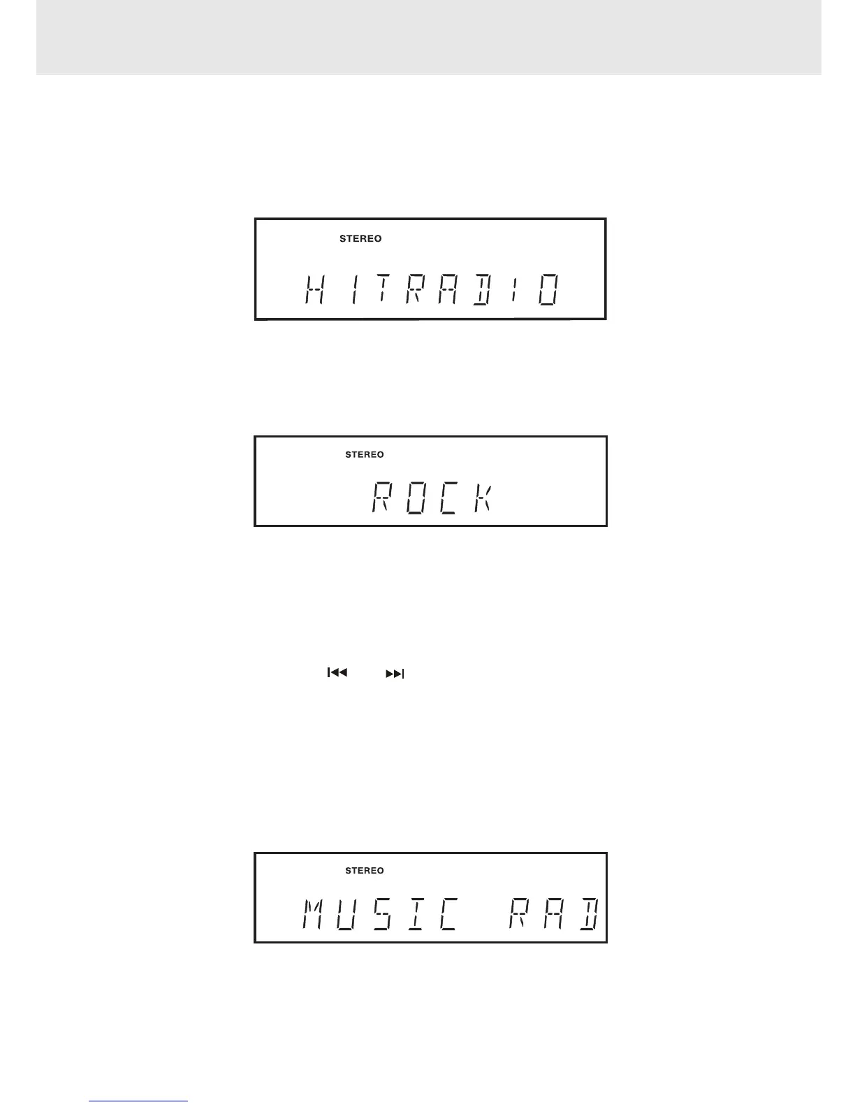 • If Radiotext is not provided by the selected station, only the station frequency will be shown in the display.