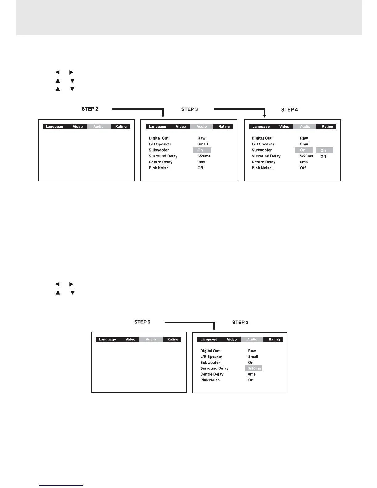 • The delay adjustment depends on the location of your surround speakers and the front speakers. If the location