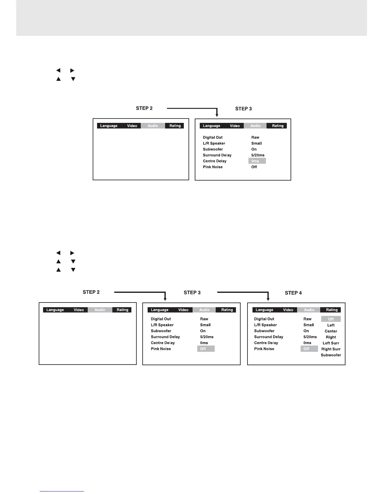• This delay adjustment depends on the location of your center speaker. If the distance between the center speaker