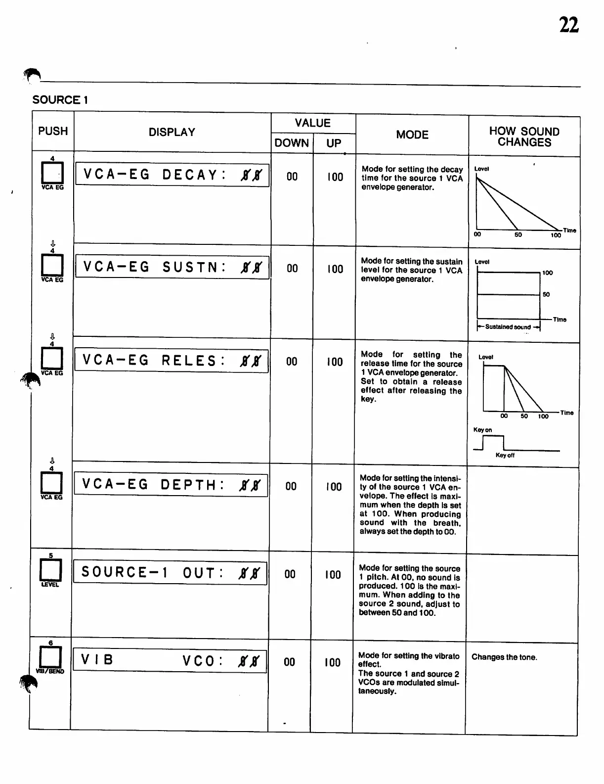 Akai EWI Series - Source 1 VCA Envelope and Vibrato Settings