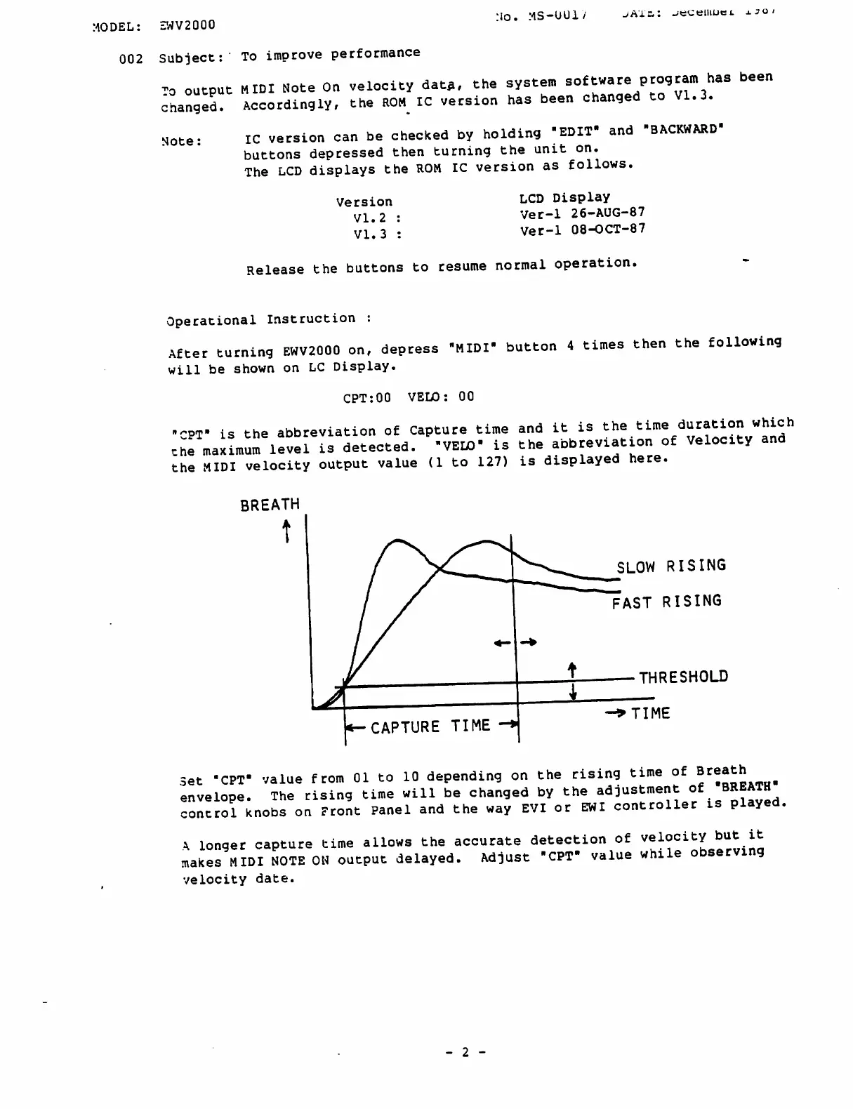 Akai EWV2000 - Parameter Editing - Vibrato and Breath Controls; Vibrato Effects on VCO, VCF, VCA; Breath Control Parameters