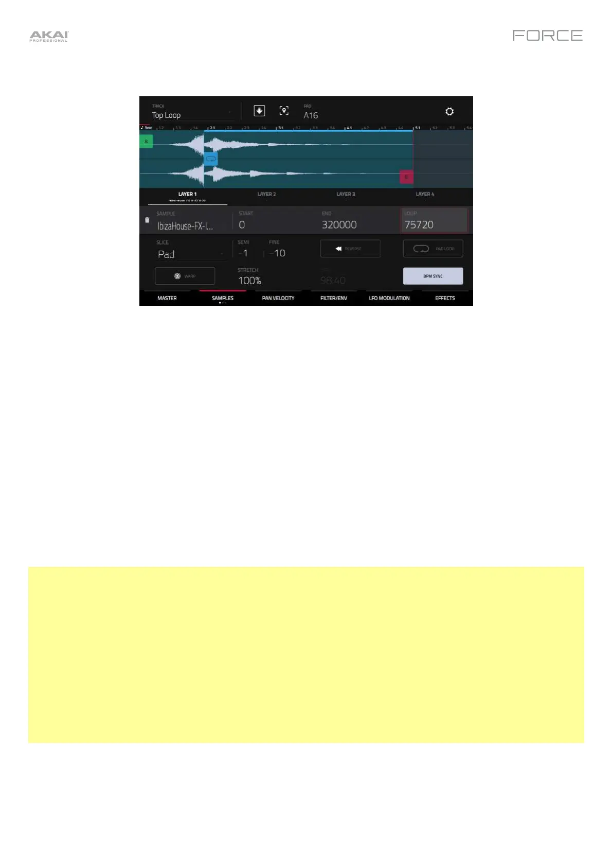 Important: The parameters in the Samples tabs work in conjunction with Chop Mode (in Sample Edit Mode). Here’s