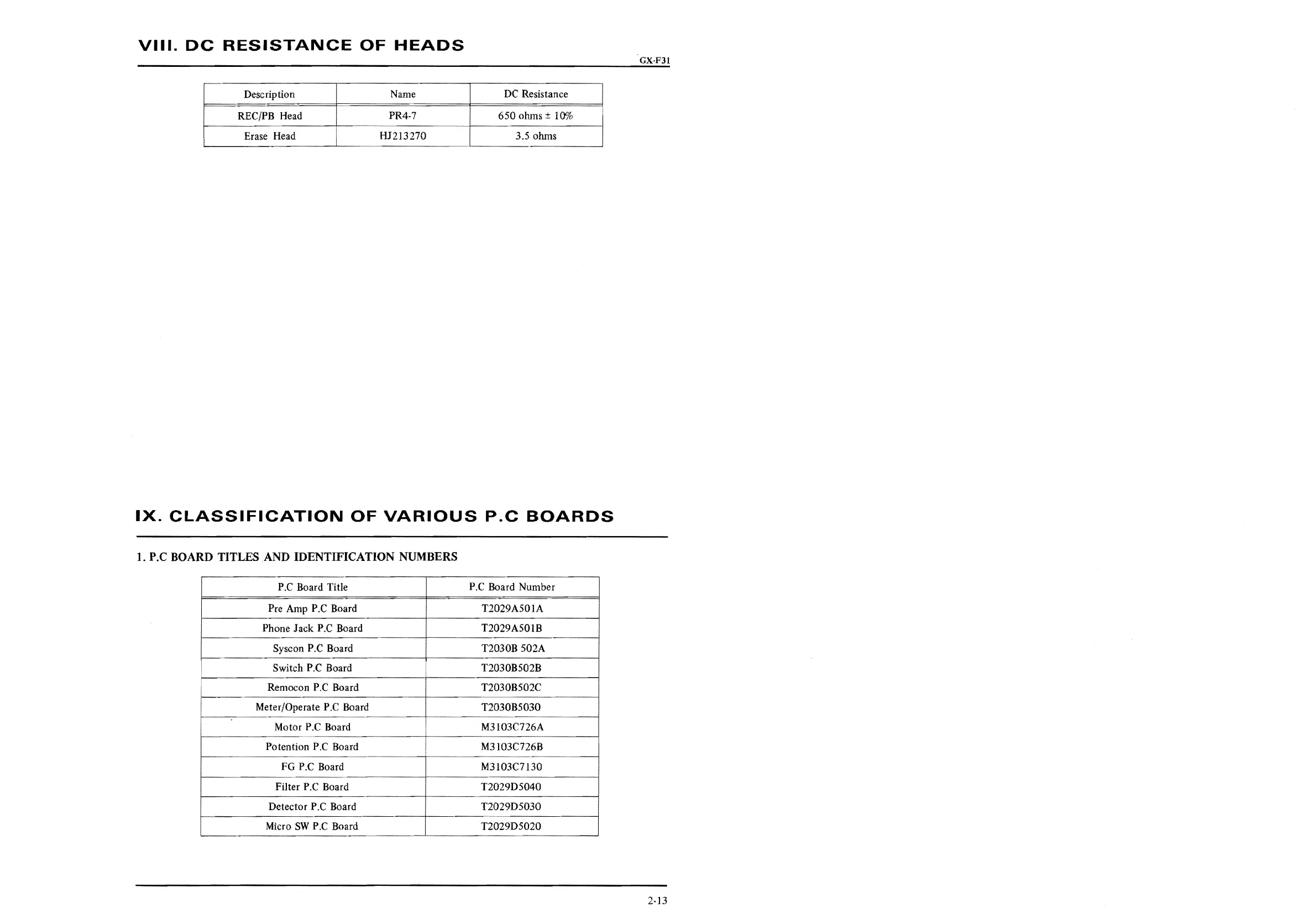 P.C BOARD TITLES AND IDENTIFICATION NUMBERS