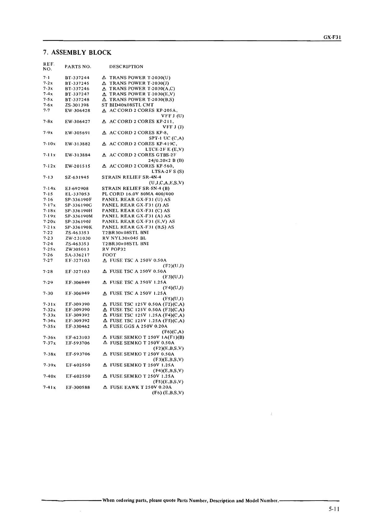 ordering parts, please quote Parts Number, Description and Model