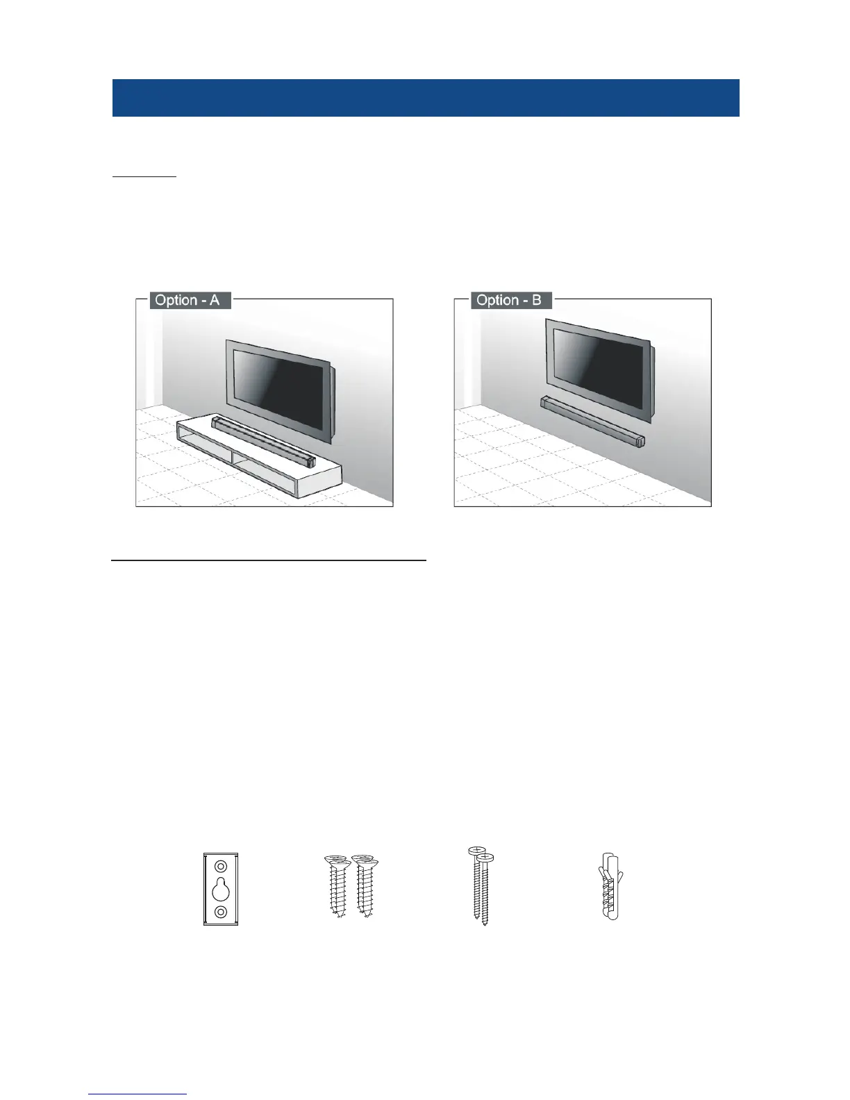 B. Als de tv aan een muur is bevestigd, kunt u de eenheid direct onder het tv-scherm tegen de