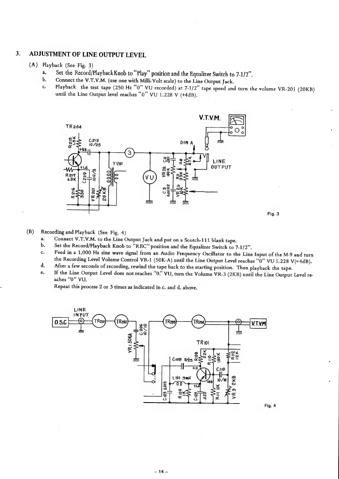 Akai M-9 - ADJUSTMENT OF LINE OUTPUT LEVEL