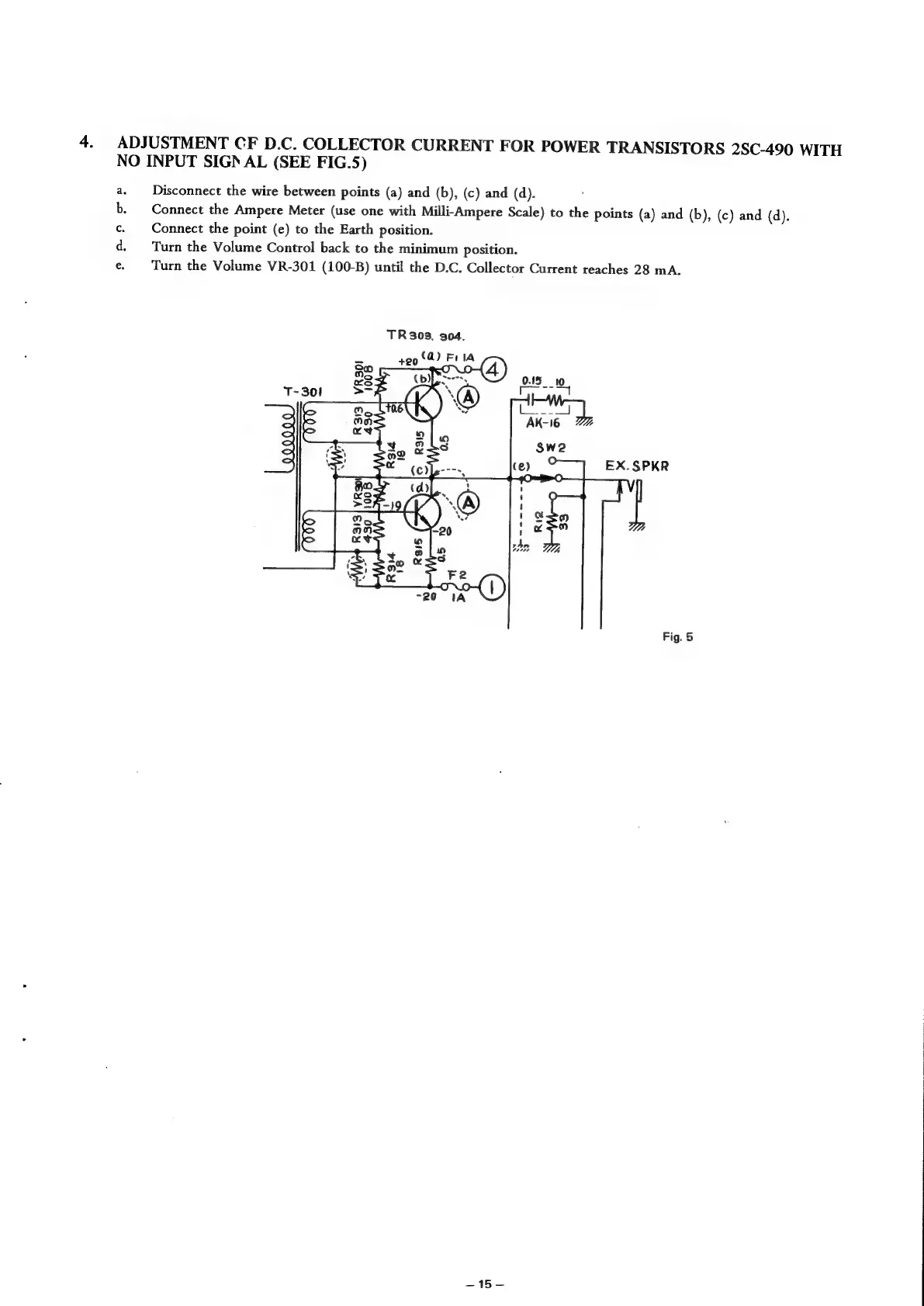 Akai M-9 - ADJUSTMENT OF D.C. COLLECTOR CURRENT FOR POWER TRANSISTORS 2 SC-490 WITH NO INPUT SIGNAL