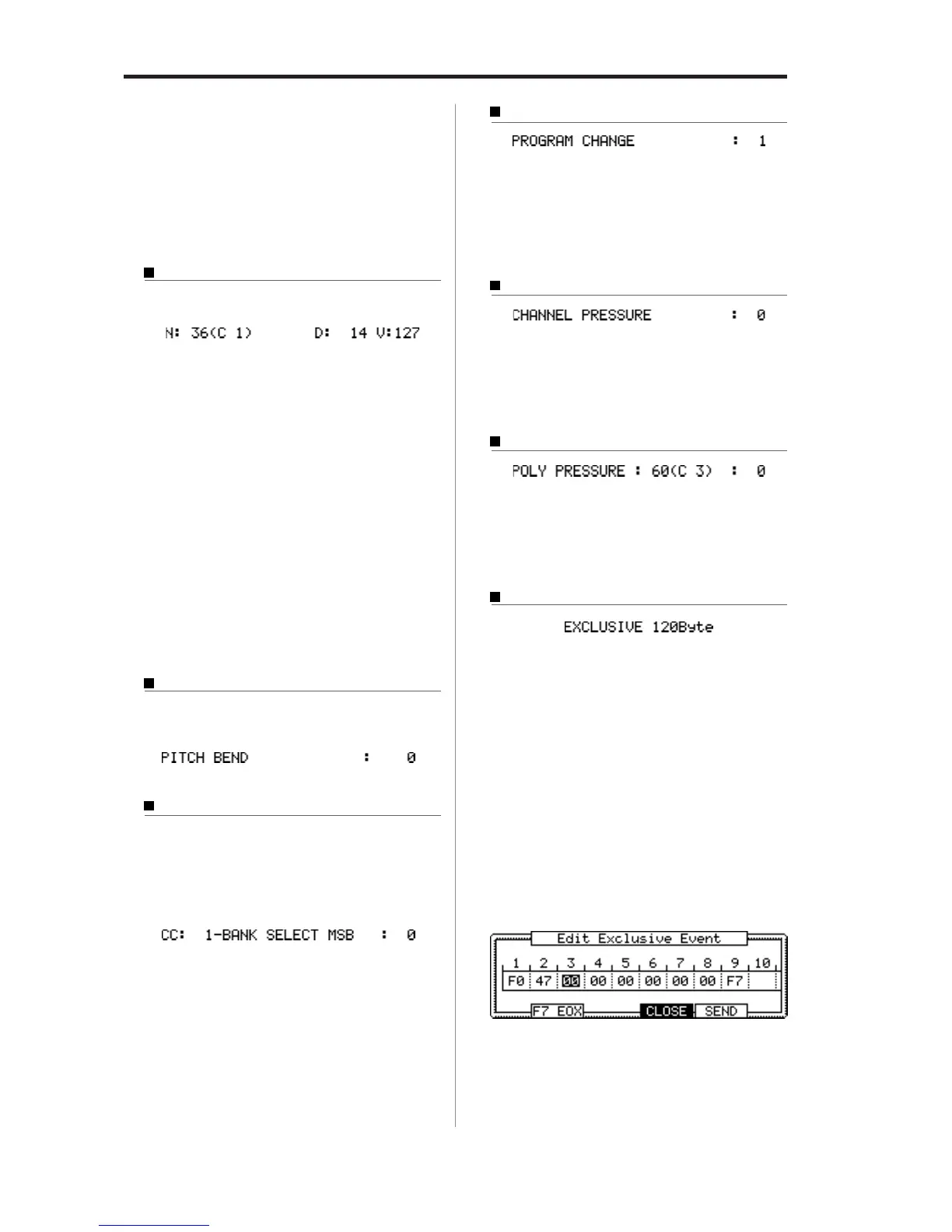 mation about the effect of each MIDI event, see the operation