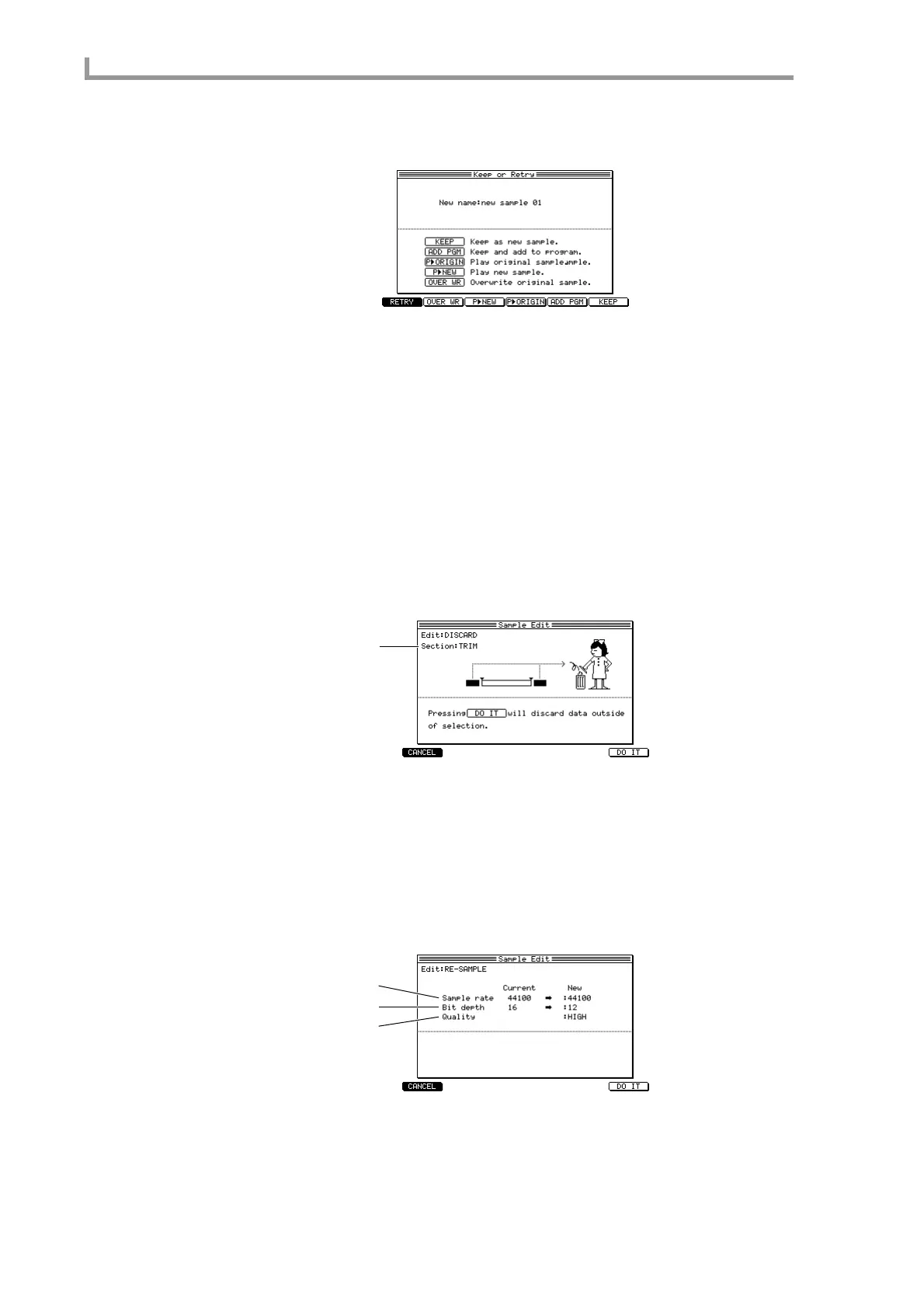 However if you press the [F2] key (OVER WR), the new sample name will be ignored