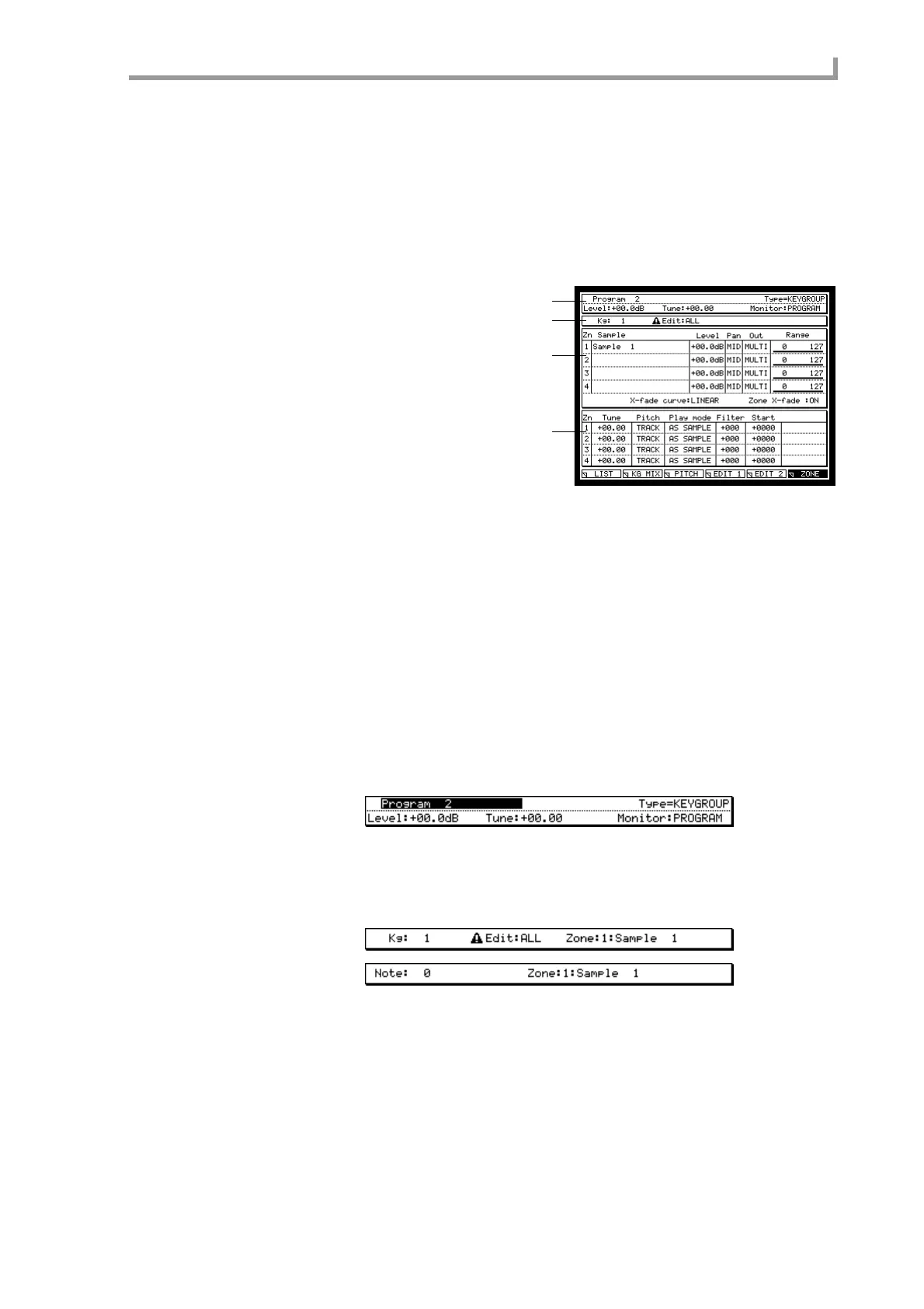 Here you can individually edit the zones 1–4 that are included in the key group or note