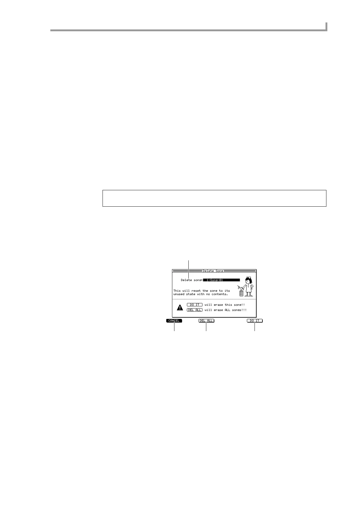 ory. Pressing the [F6] key (DO IT) while this window is displayed will delete all songs