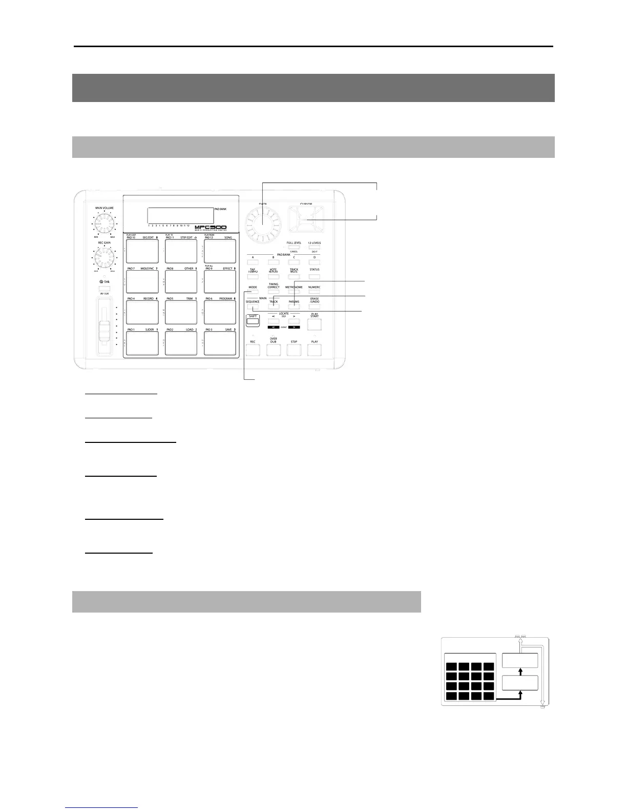El MPC500 consiste en la sección del muestreador, donde se graba y reproduce el sonido, la sección del