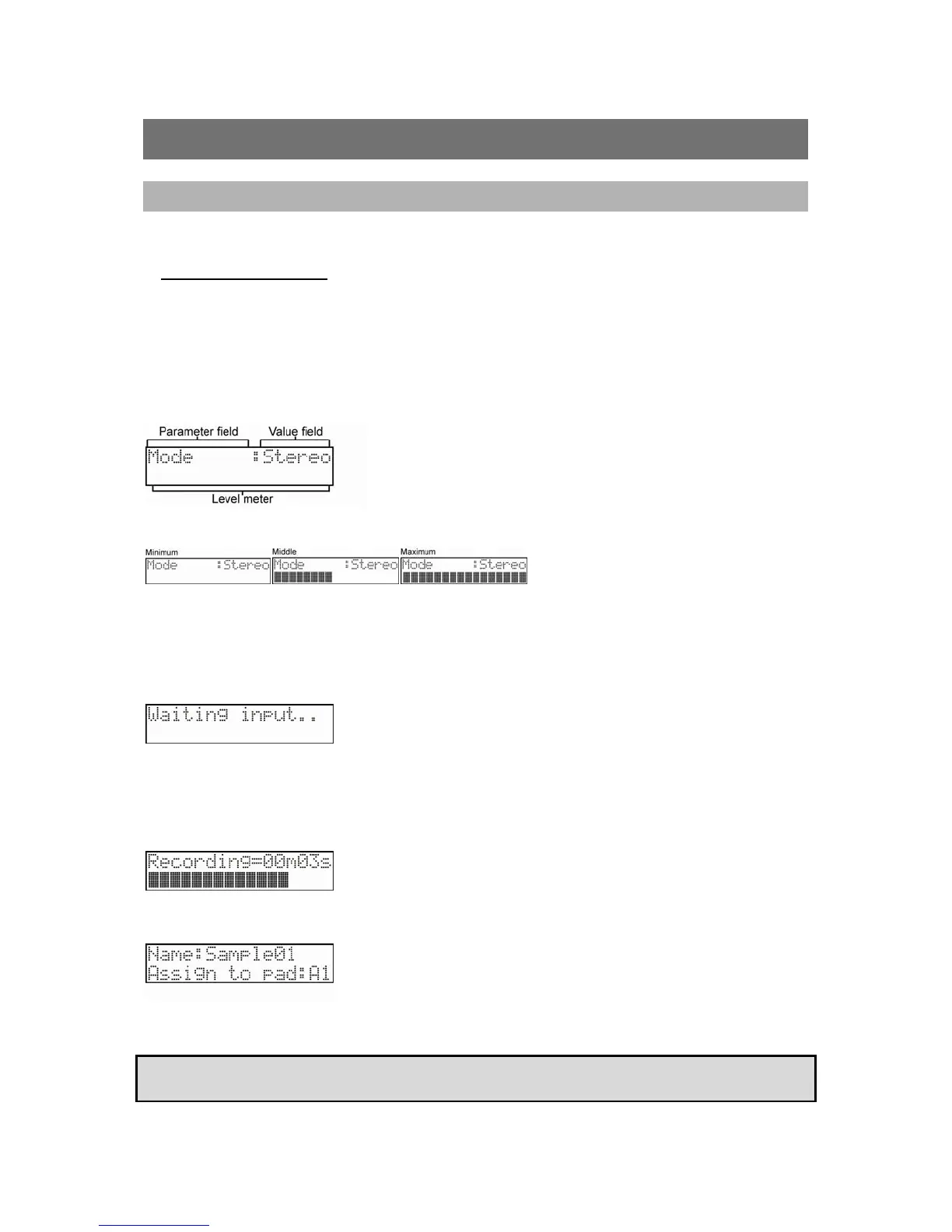 too low, the sample will gain a lot of noise. Set the level as high as possible without reaching the right edge (clip).