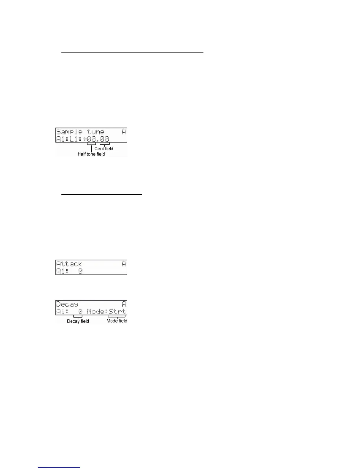 You can set the sample’s decay time in this field. The larger you set the value, the slower the fade out becomes. You can also set the start