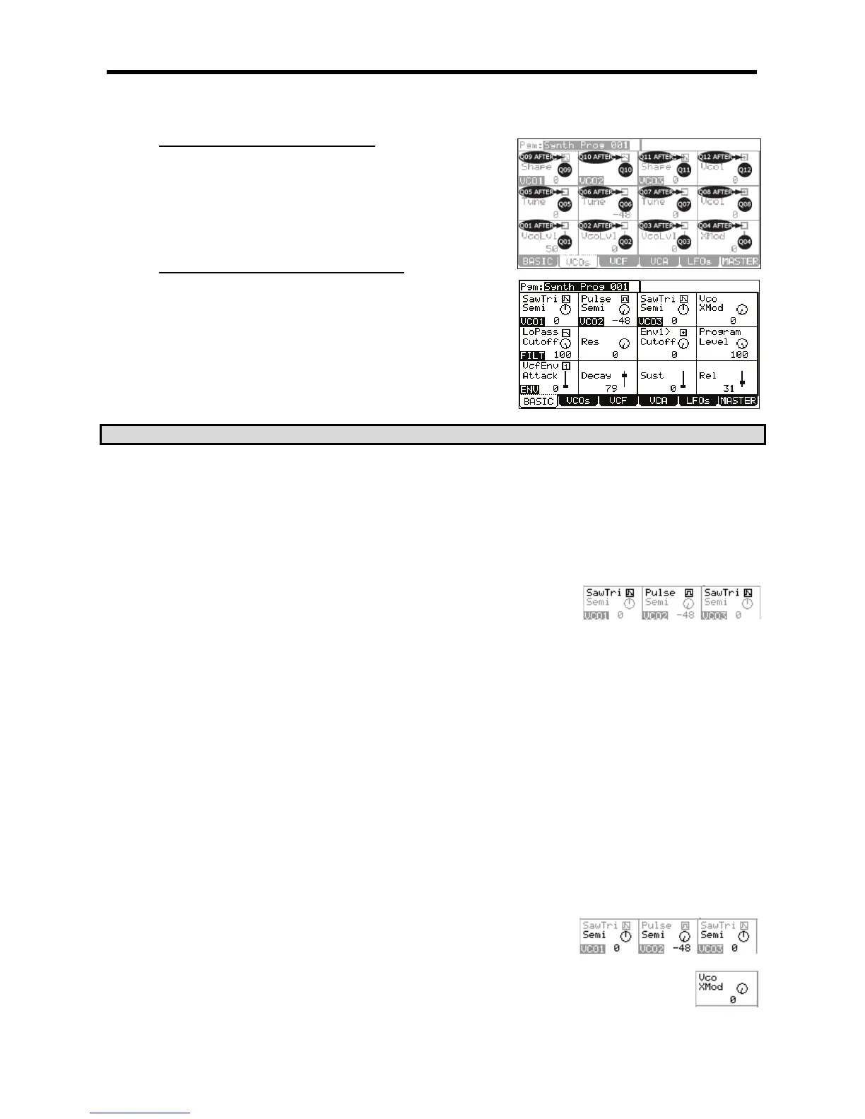 The label in the lower left corner indicates which component of the synth is to be edited.