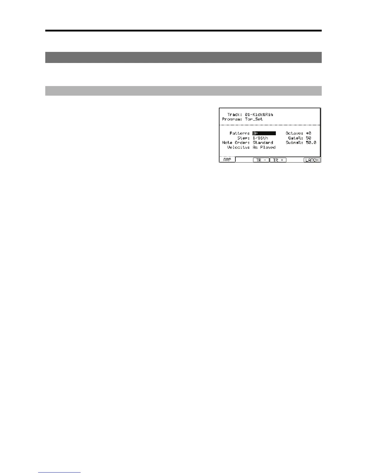 This will open the ARPEGGIATOR page as shown on the right. Note that the
