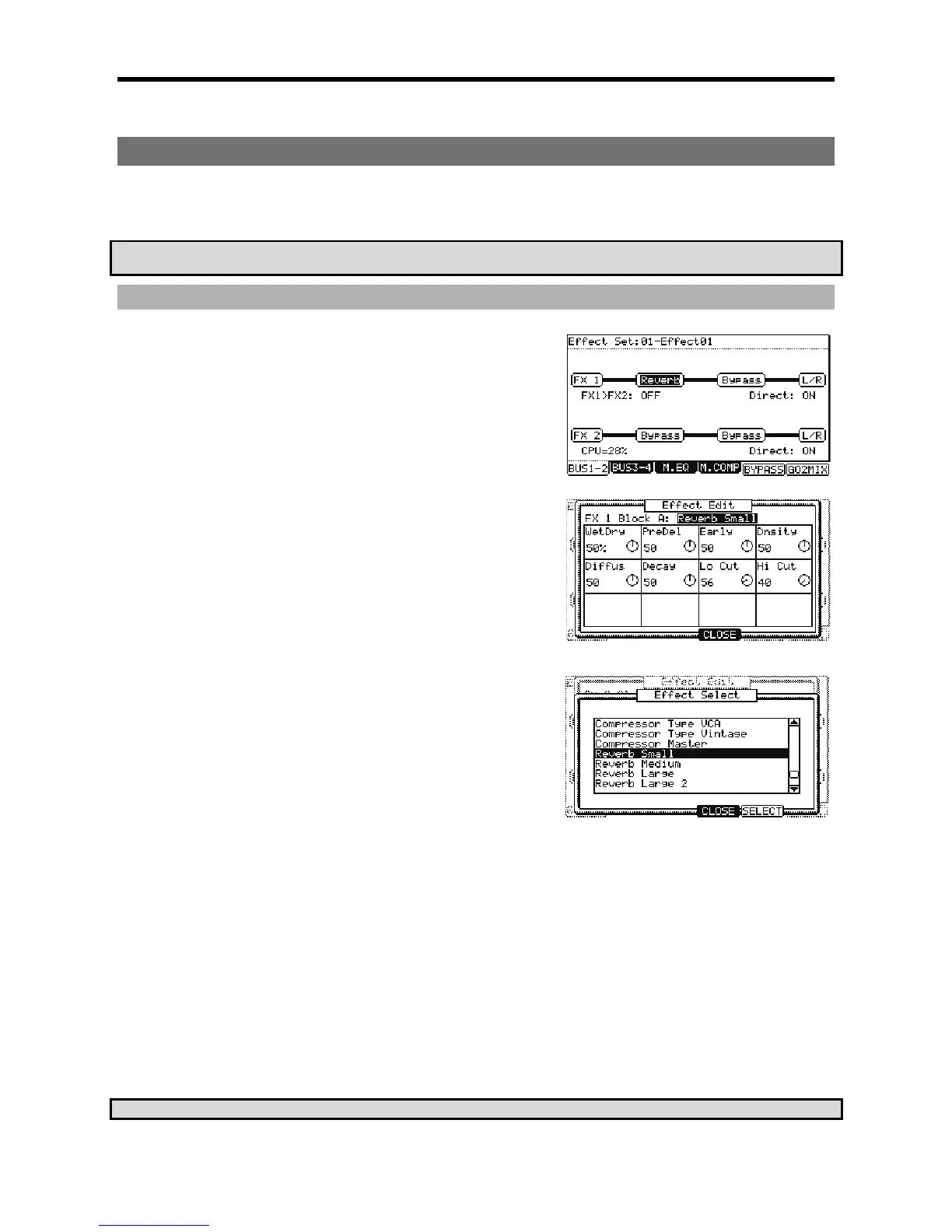 buss are displayed. Two effects can be assigned in series per buss. Busses 1 and