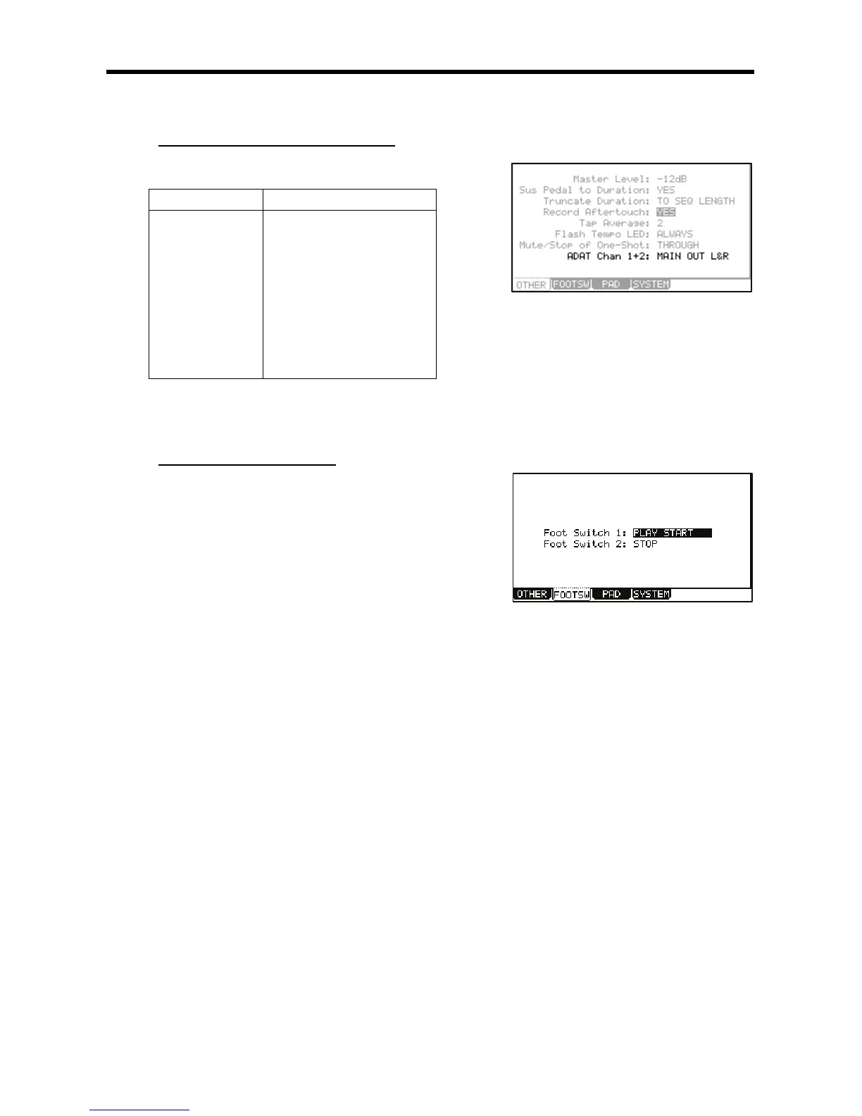 This brings up the FOOTSW page, where you can make settings for the foot switch.