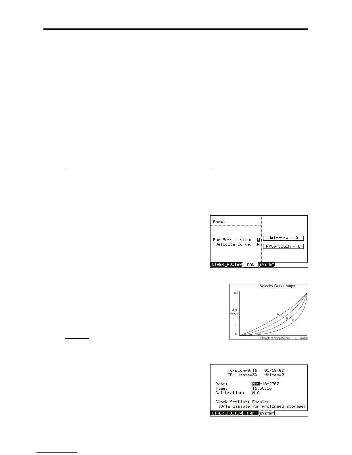 current Pad sensitivity and the current Velocity curve will be displayed in 'Pad