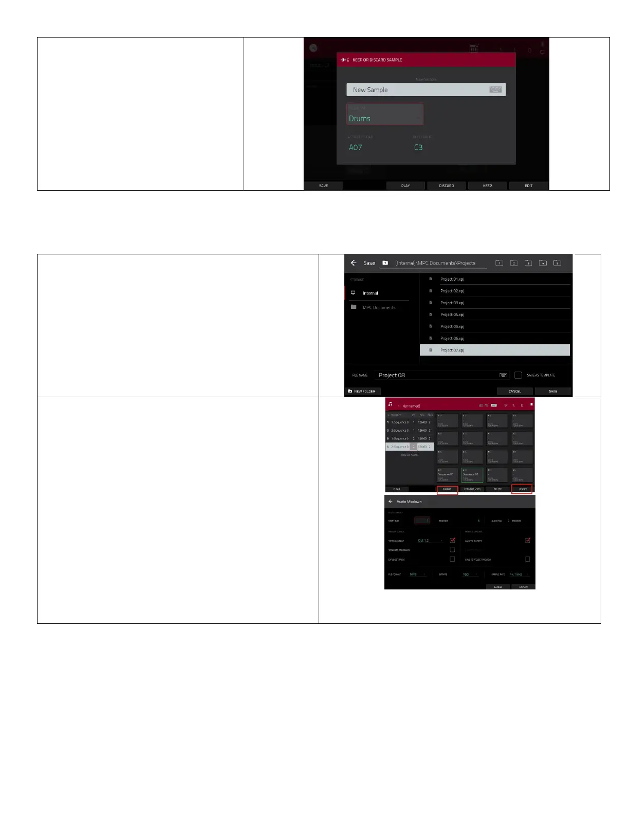 Any projects or samples saved to the internal drive