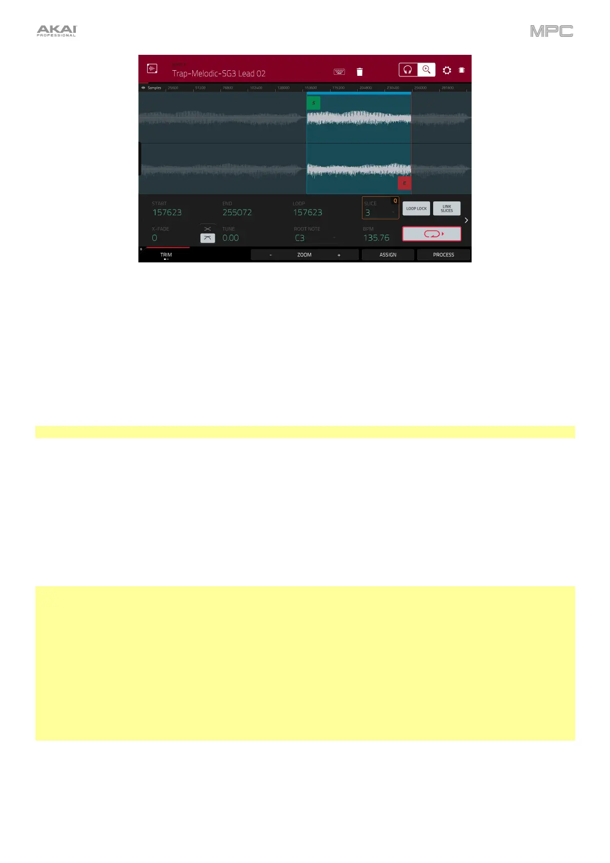Tip: You can use Trim Mode for a specific slice of the sample, previously created and selected in Chop Mode. This