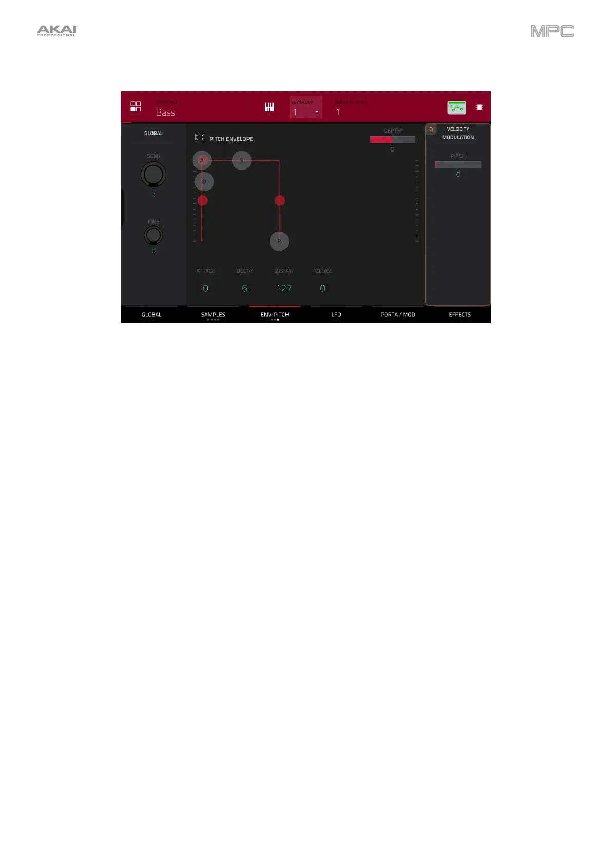 The Velocity Modulation control determines how much the velocity affects the pitch envelope (Pitch).