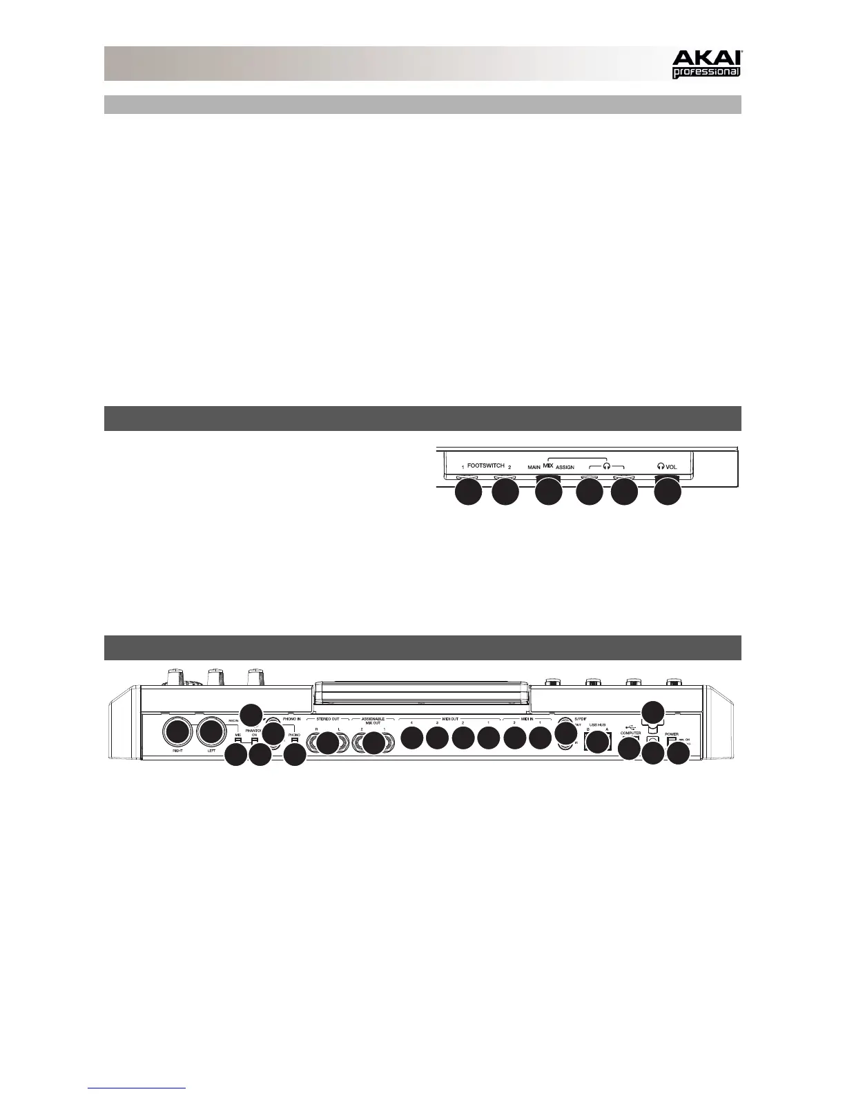 6. STEREO OUT – Ces sorties TRS ¼ po permettent de brancher un système de haut-parleurs (non inclus).