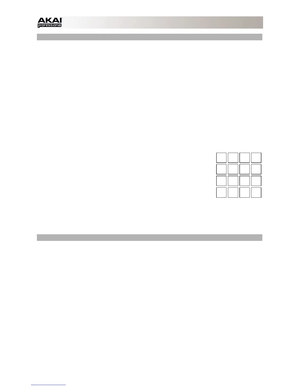 campione a un pad. A display, la griglia 4x4 che compare rappresenta i 16 pad. Servirsi dei TASTI