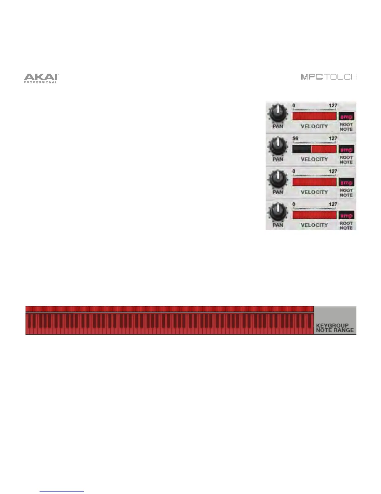 The virtual keyboard shows the Note Range, which can be set in the Key Group section. You can also