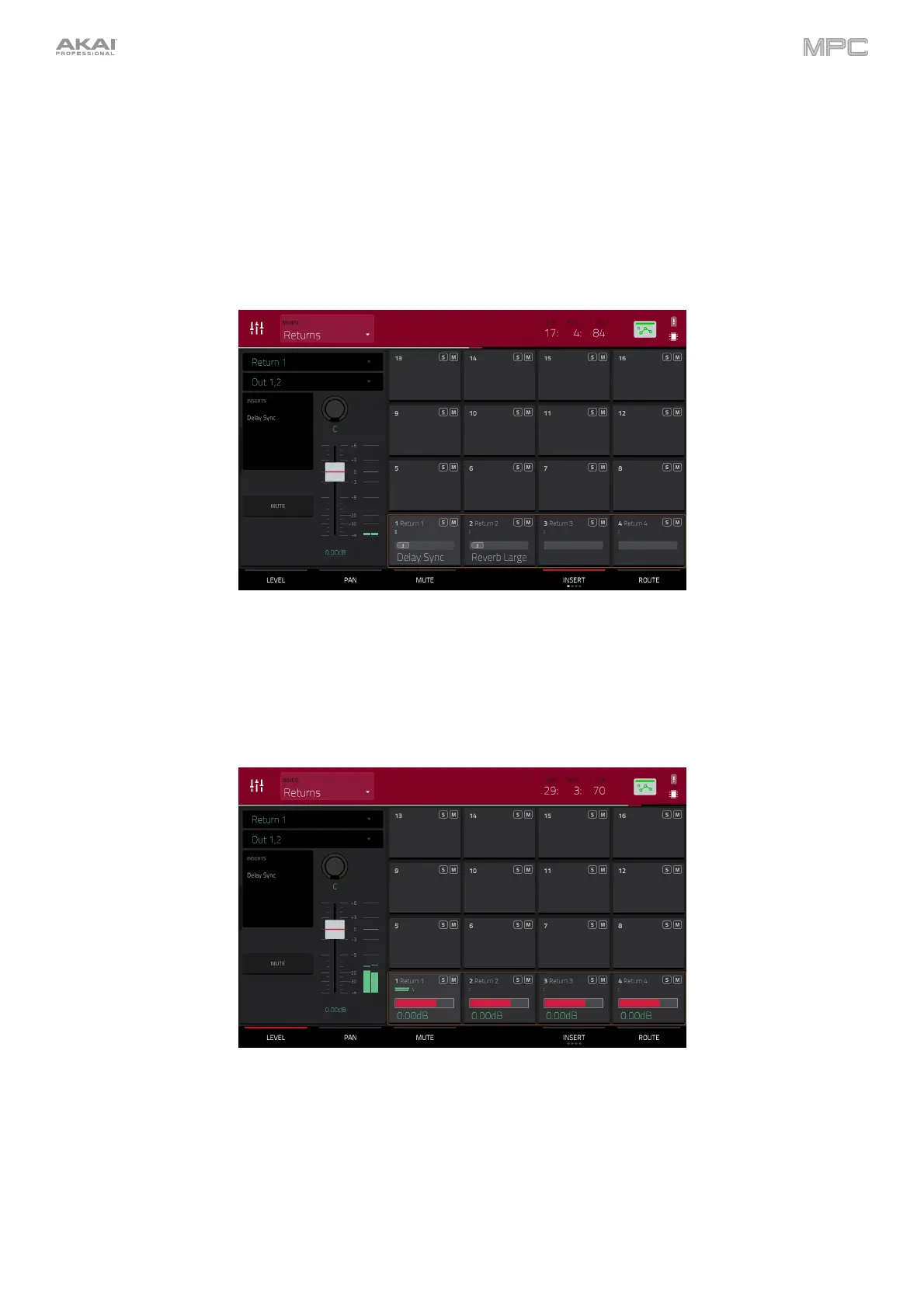 4. To adjust the level of the currently selected return, use the data dial or –/+ buttons. Alternatively, use the