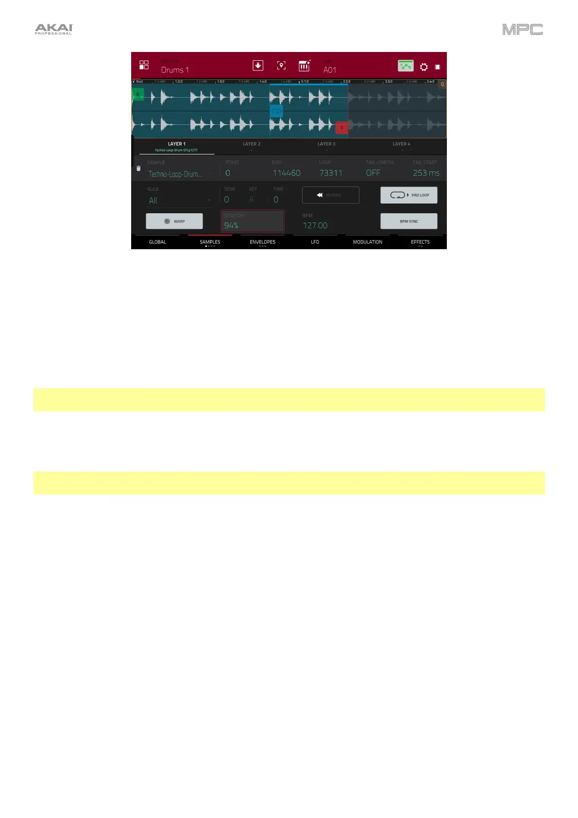 Use the Loop field to determine the position where the sample’s playback will repeat when Pad Loop is activated.