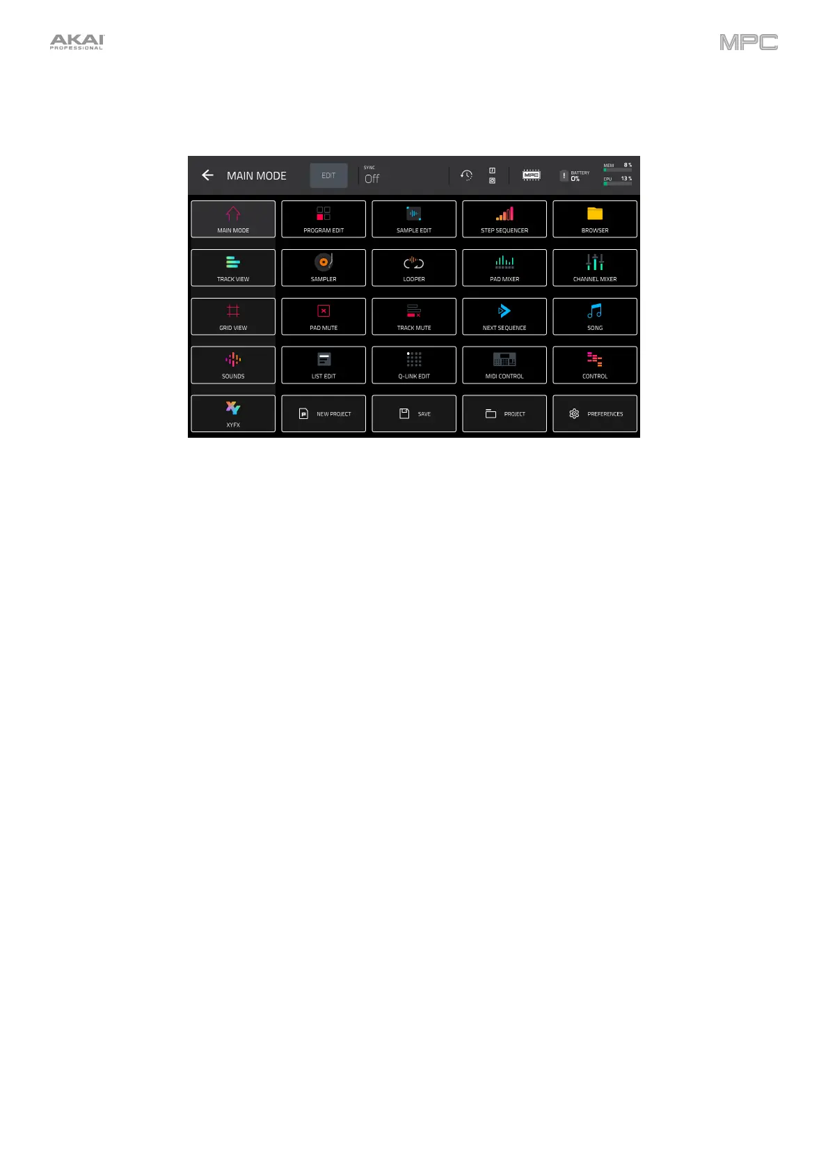 1. Press Menu, or tap the icon in the upper-left corner of the screen while viewing any mode.