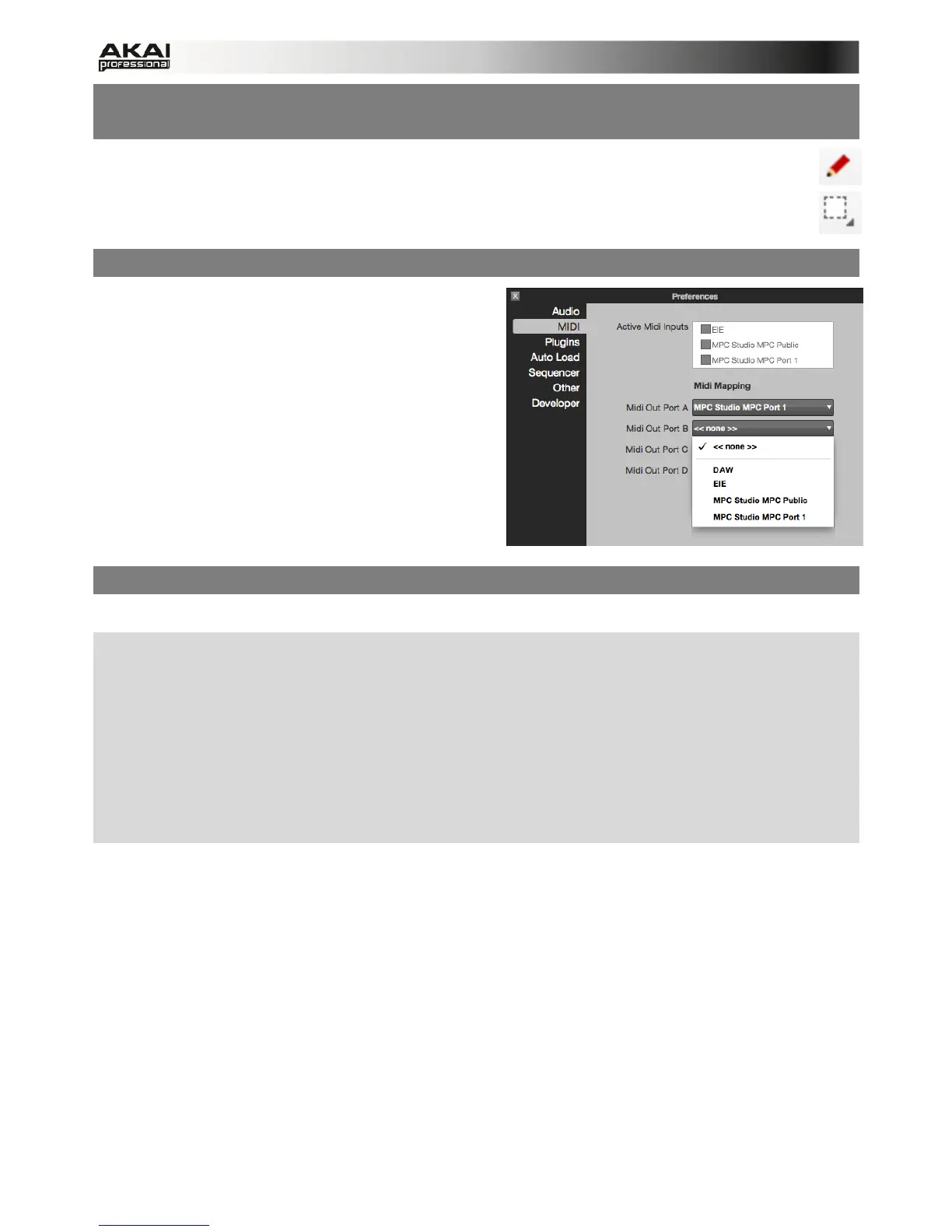 MIDI tab. Click the Midi Out Port pop-up menus