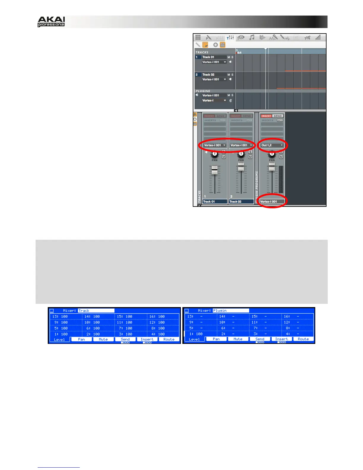 Track Mixer Mode. Tracks 01 and 02 are routed to