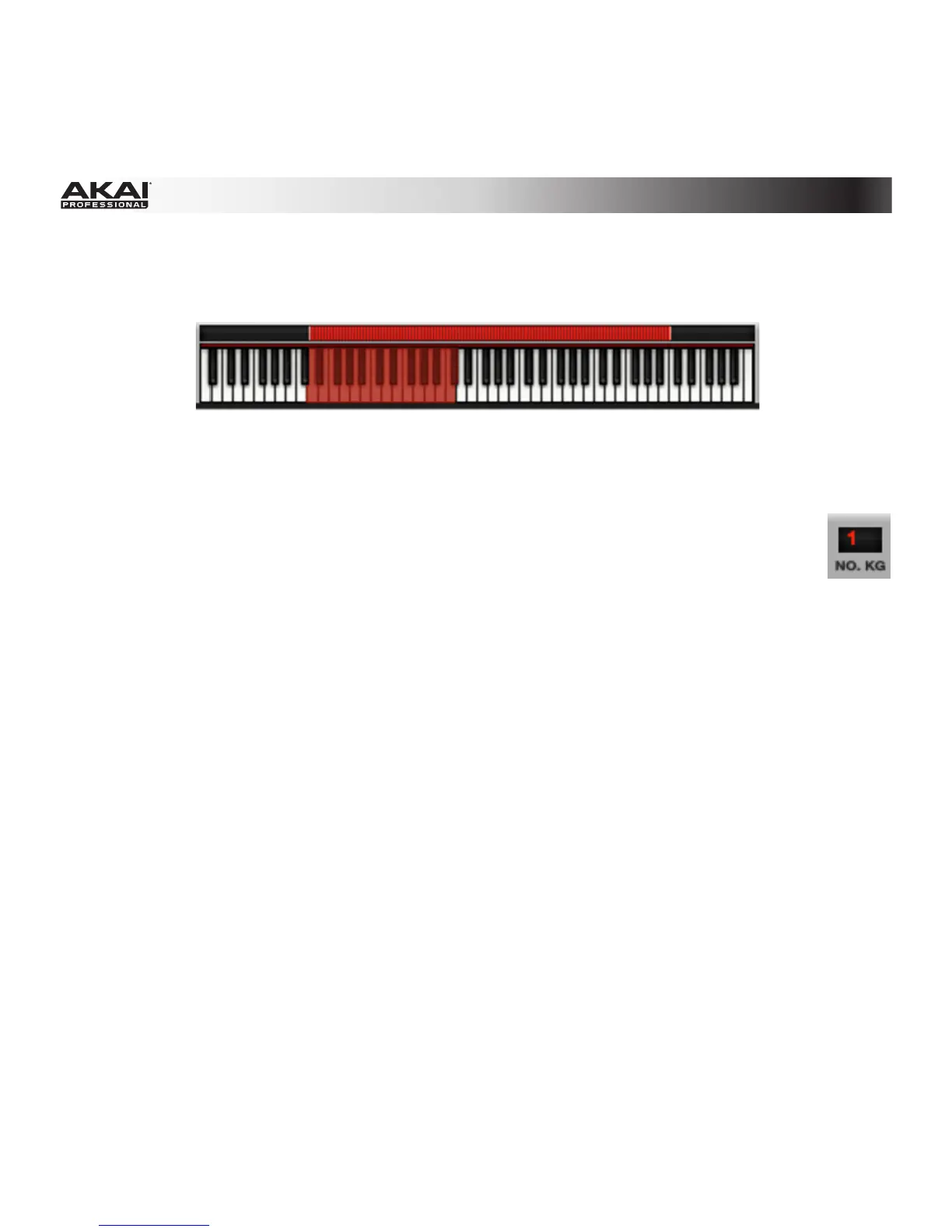 Click the red bar above the virtual keyboard to set the overall key range for the selected Keygroups.