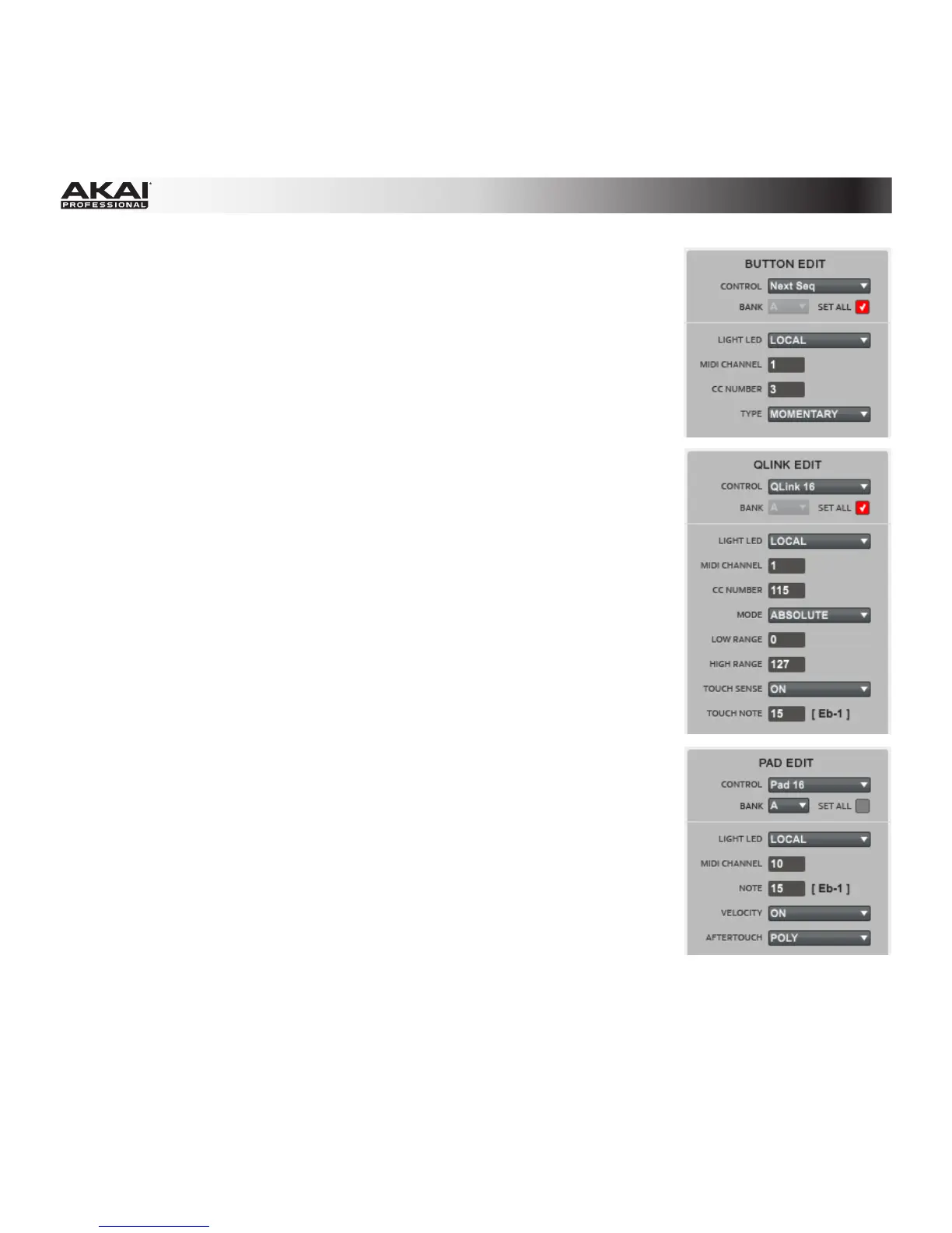 • CC Number (buttons and Q-Link Knobs only): This determines