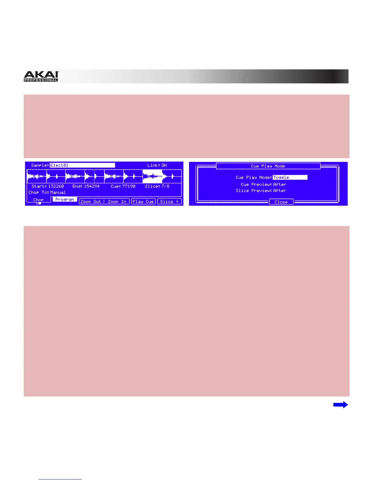 position (in samples). Alternatively, use the Cursor Buttons to select the Cue field and turn the Data
